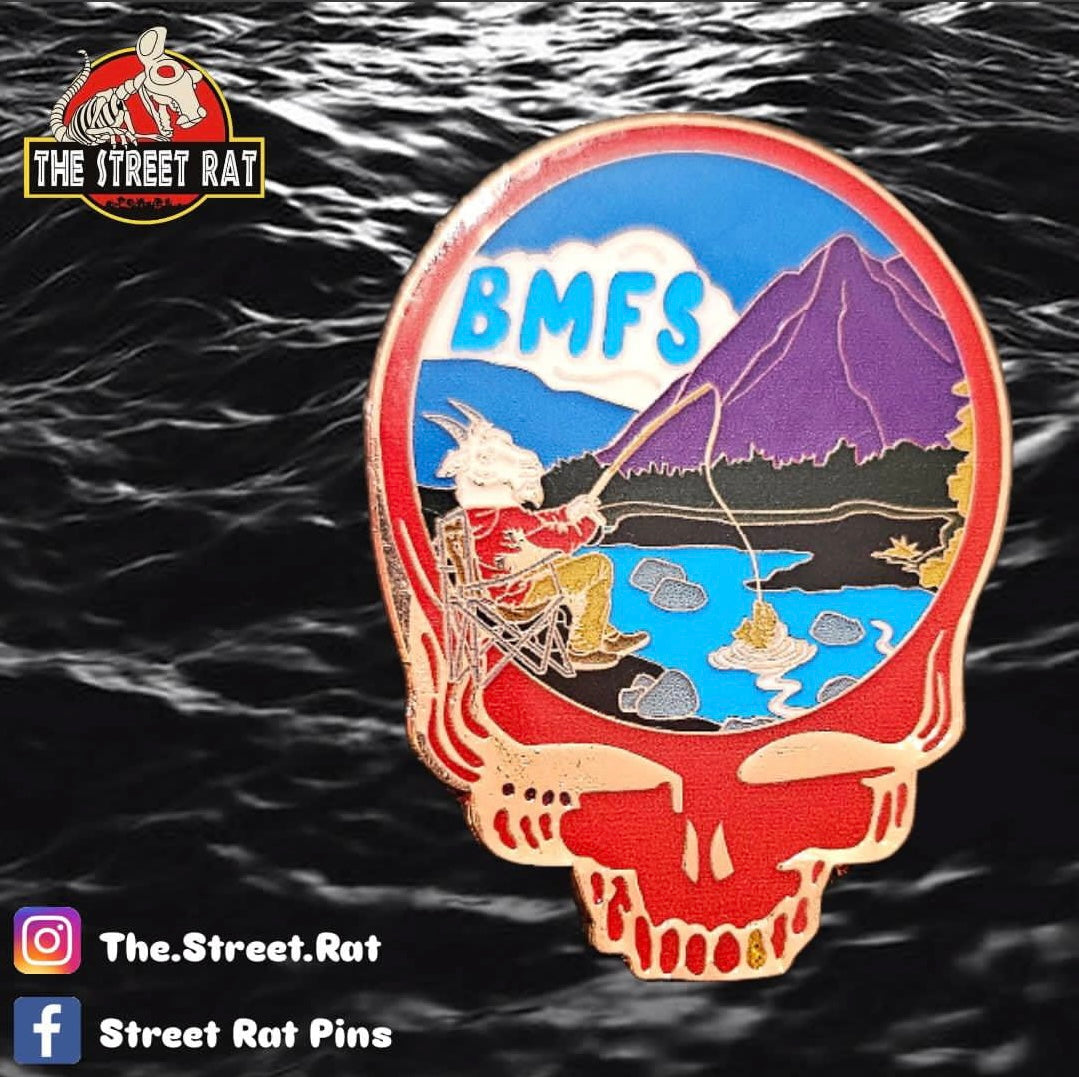 This anthropomorphic goat is enjoying a beautiful scenic river spot while fishing for bass.